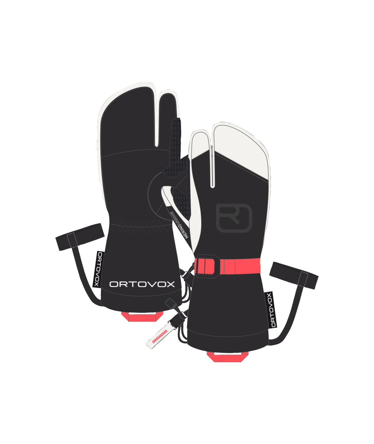Wasserdichter Softshell-Handschuh mit langer Stulpe, verstellbarem Bündchen und intelligentem Stoppersystem, um den Schnee außerhalb des Handschuhs zu halten.