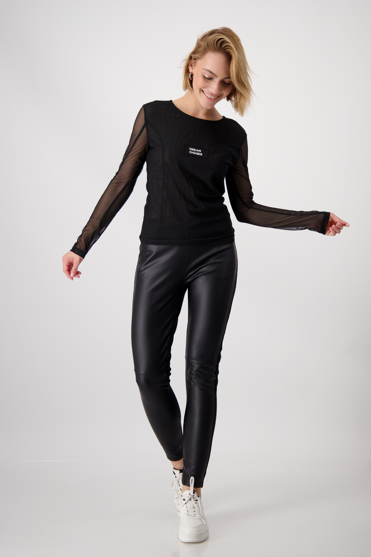 Die Leggings aus einem Materialmix überzeugen mit einer Vorderseite mit Lederoptik-Beschichtung und einer Rückseite aus elastischer Viskosemischung. Sie bieten einen perfekten Sitz, Formbeständigkeit und hohen Tragekomfort.