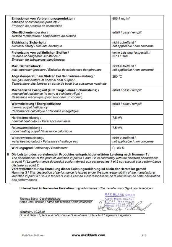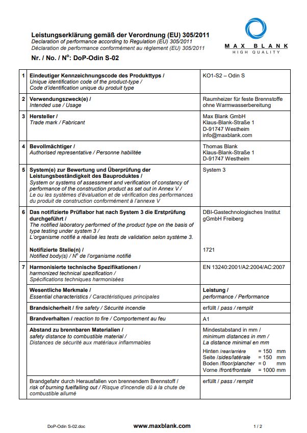 Mit seinen Abmessungen von H 125,5 x B 64 x T 63 cm bringt der Odin S bei einem Leistungsbereich von 4,3 - 7,8 kW im Holzabbrand und 8,7 kW im Pelletabbrand ein Gesamtgewicht von 353 / 403 kg auf die Wage.