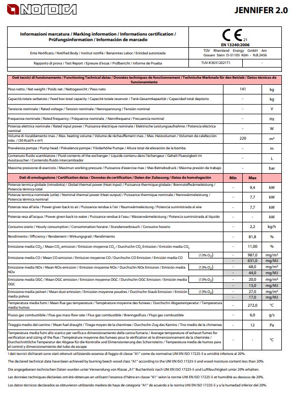 Der Gussofen Jennifer 2.0 des italienischen Traditionsunternehmens LA NORDICA bietet mit seiner modernen Optik und und seiner eleganten Linienführung Wärmegenuss in Verbindung mit moderner, effizienter Feuerungstechnik und dem speziell entwickelten Post Combustion System, welches dank eines Zweit-/ Drittluftsystems eine Nachverbrennung ermöglicht, was die schädlichen Emissionen signifikant reduziert. Der Kaminofen Jennifer 2.0 ist aus langlebigem und massivem Guss gefertigt. Die Oberfläche ist hochwertig emailliert. Die extragroße Sichtscheibe ermöglicht dem Betrachter eine spektakuläre Sicht auf die lodernden Flammen und machen den Schwedenofen zu einem Blickfang in jedem Ambiente von klassisch bis modern. Die Abmessungen des mit Nordiker, einem besonders langlebigem, feuerfesten Material ausgekleideten Feuerraumes sind so ausgelegt, dass Holzscheite mit bis zu 50 cm Länge geladen werden können. Besonders praktisch ist das Holzfach im unteren Bereich des Ofens, dank welchem Sie Ihren Holzvorrat stets stilvoll und griffbereit aufbewahrt wissen.