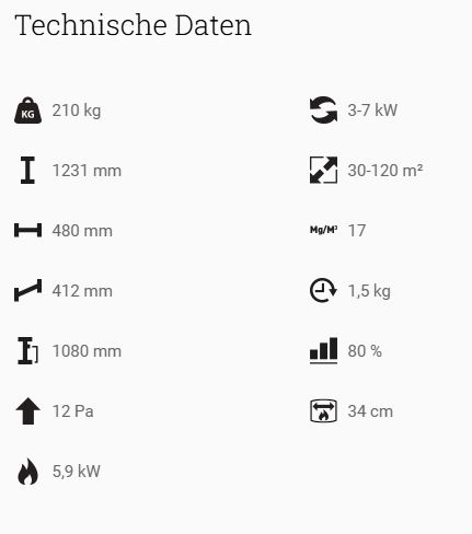 Der Mondo 30M wiegt ganze 210 kg. Verglichen mit einem Mondo 30 aus Stahl bietet er damit etwa 100 kg zusätzliche Speichermasse. Hierdurch erhöht sich die Wärmespeicherkapazität erheblich und die Wärmeabgabezeit verlängert sich weiter.