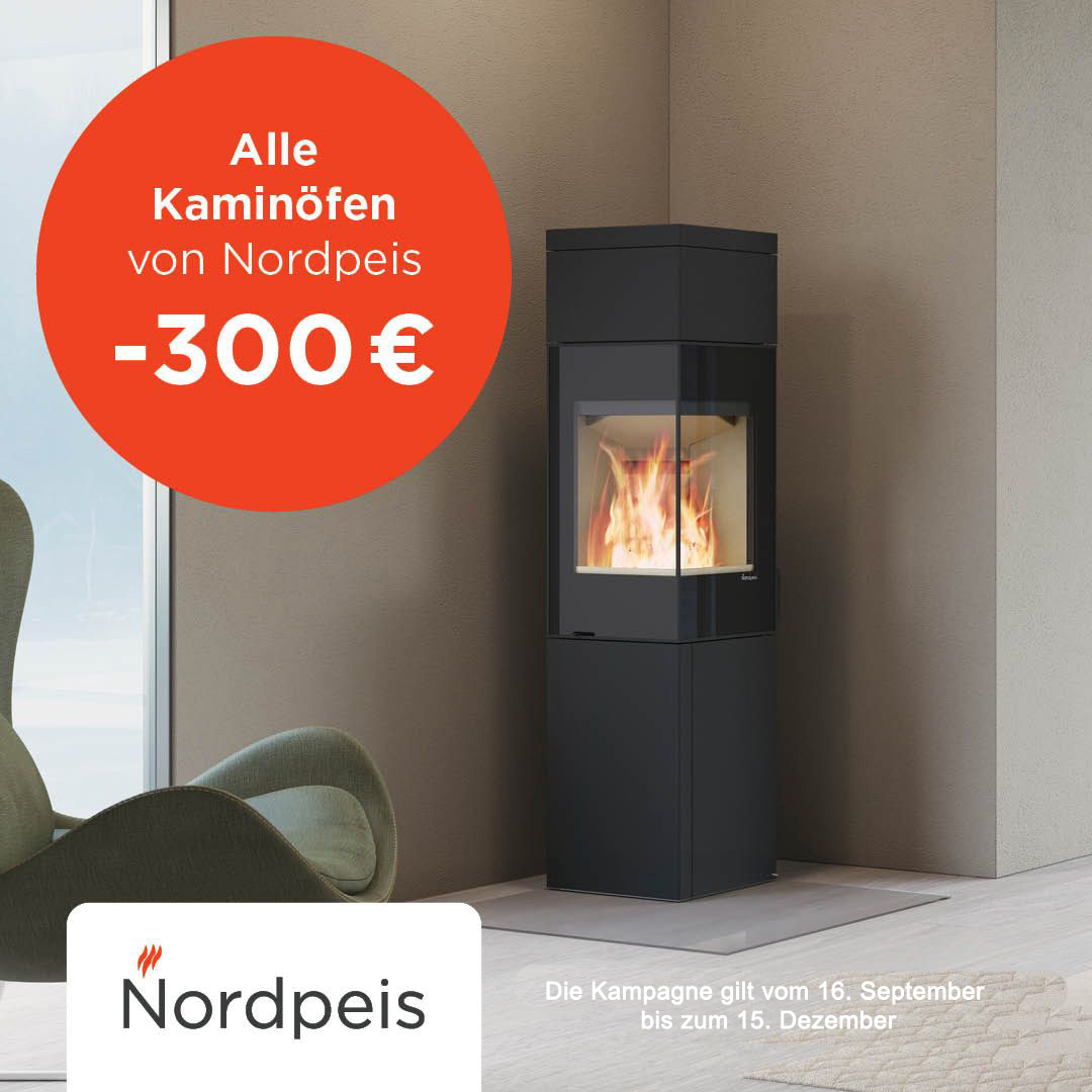 Nordpeis Lisboa hat eine erhöhte Brennkammer mit dreiseitiger Verglasung. Das bietet eine gute Sicht auf die Flammen von allen Seiten. Die schmale Kaminanlage beansprucht wenig Bodenfläche. Außerdem hat sie rückseitig einen integrierten Hitzeschutz und kann somit direkt an einer Wand aus brennbarem Material verbaut werden.
