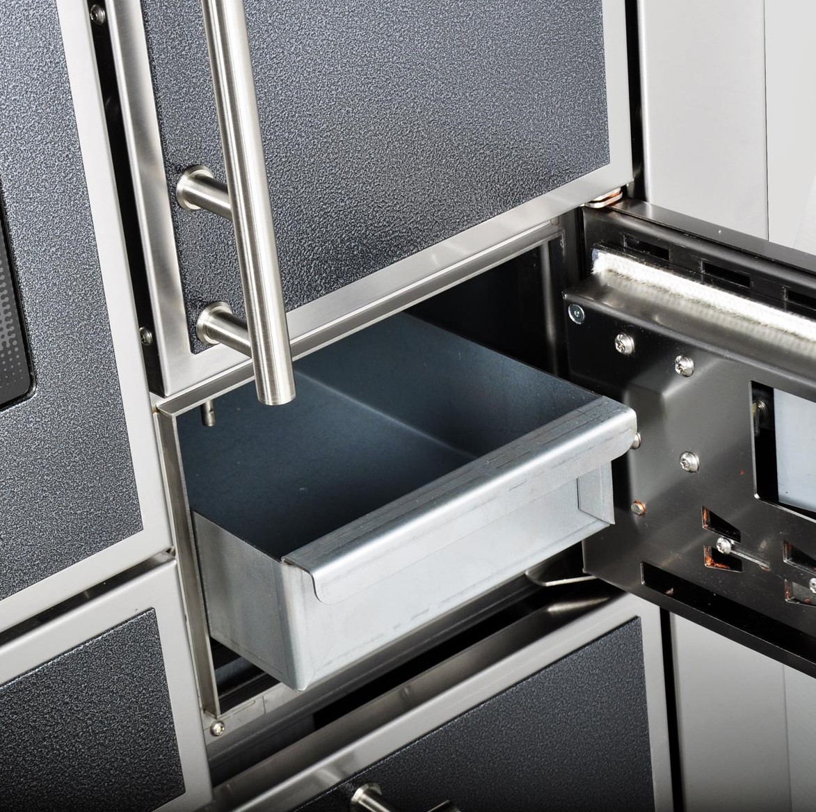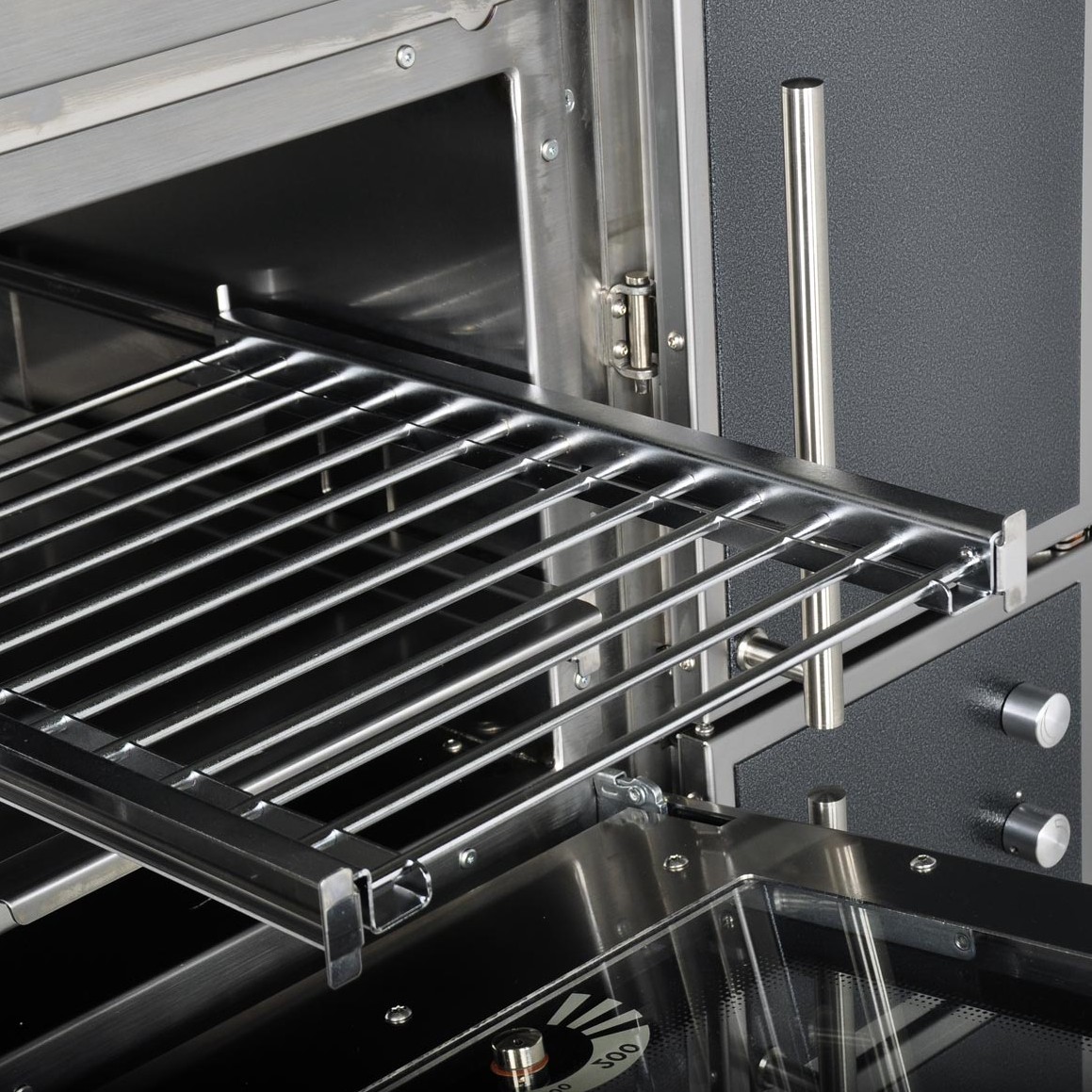 - Bratrohrtür mit doppelglasigem Sichtfenster und Thermometer
