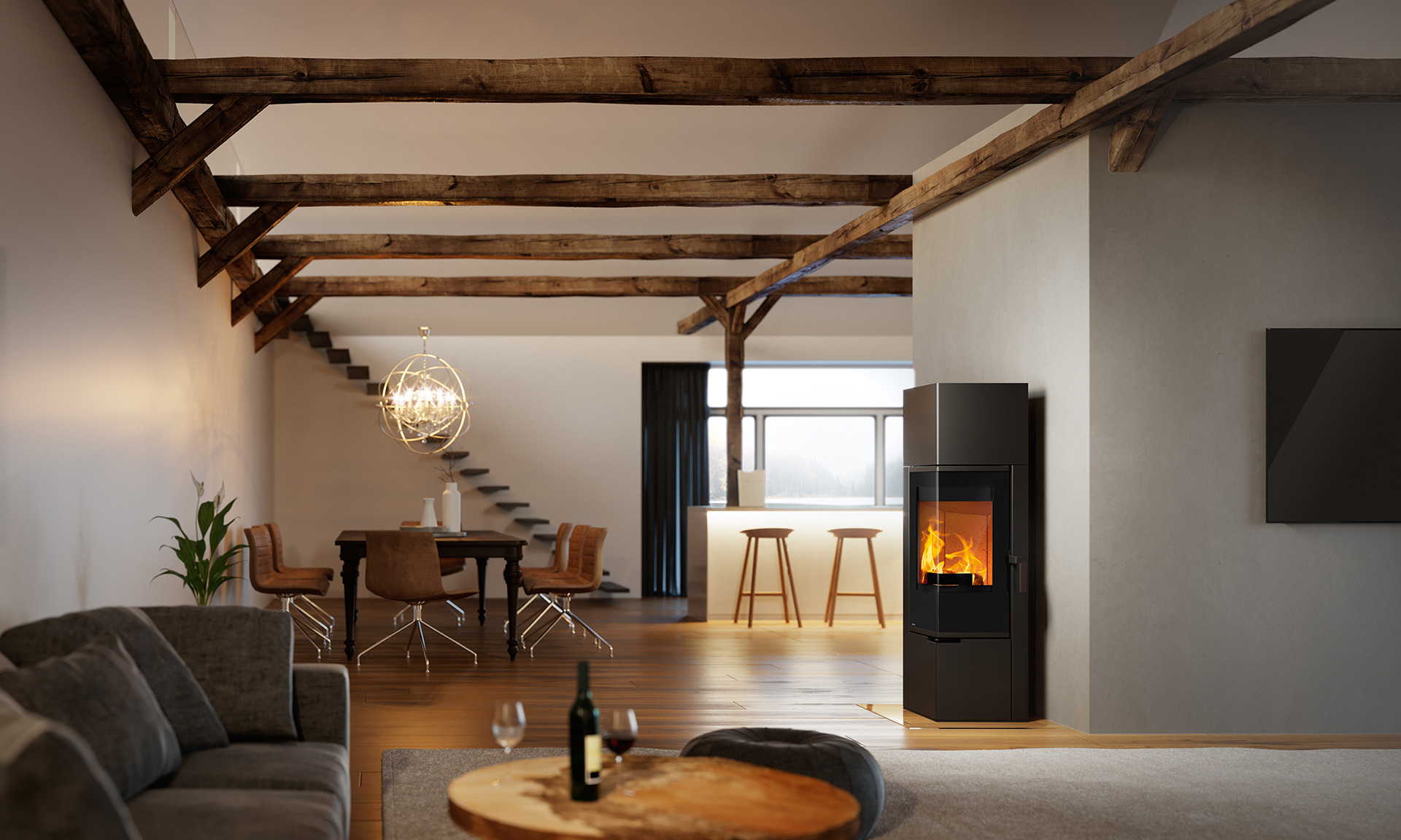Der Kaminofen gliedert sich durch seine Form perfekt in jedes Wohnambiente ein.