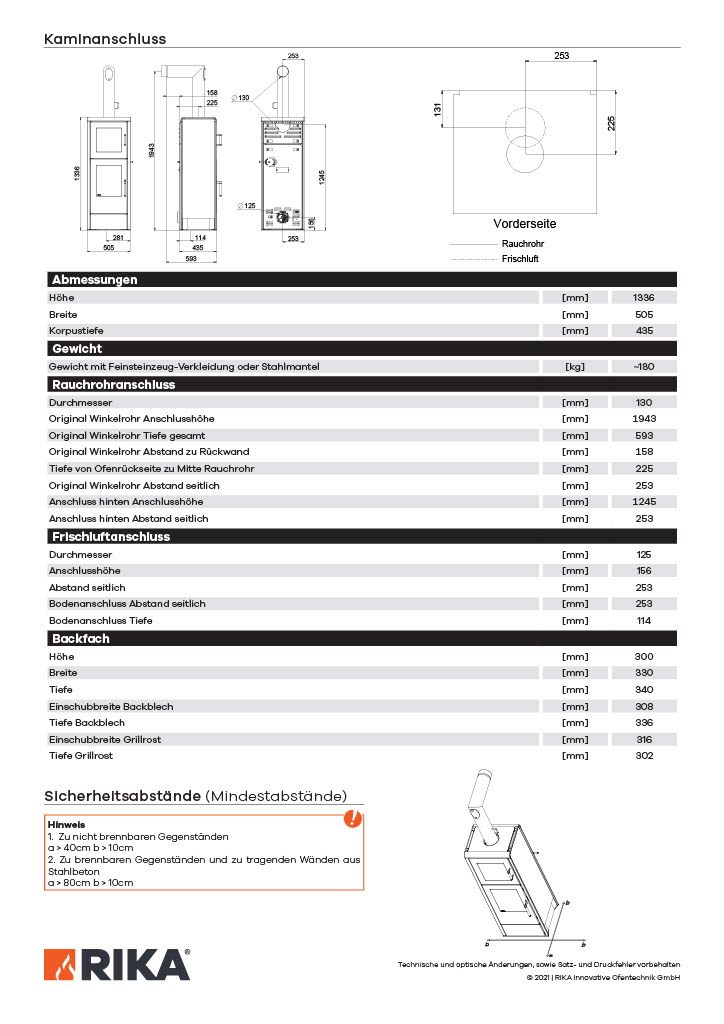 Produktinformationen "RIKA-Kaminofen BACK - RA oben, m. Stahlmantel schwarz"