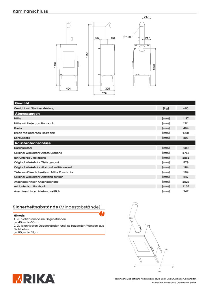 Produktinformationen "RIKA-Kaminofen LOOK mit Gussfüße"