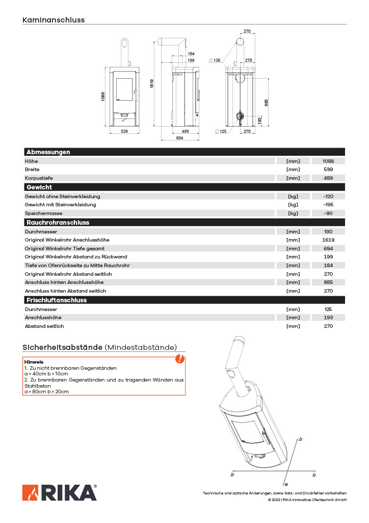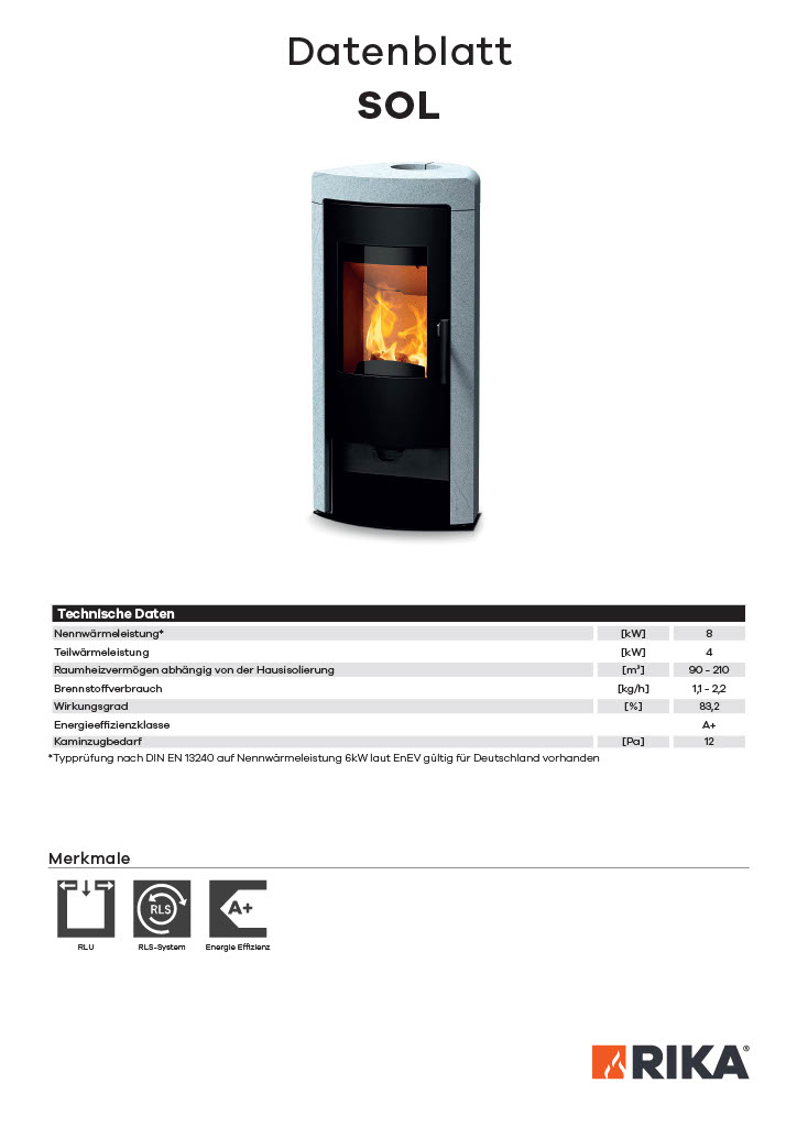 Produktinformationen "RIKA-Kaminofen Modell SOL m. Speckstein RA oben"