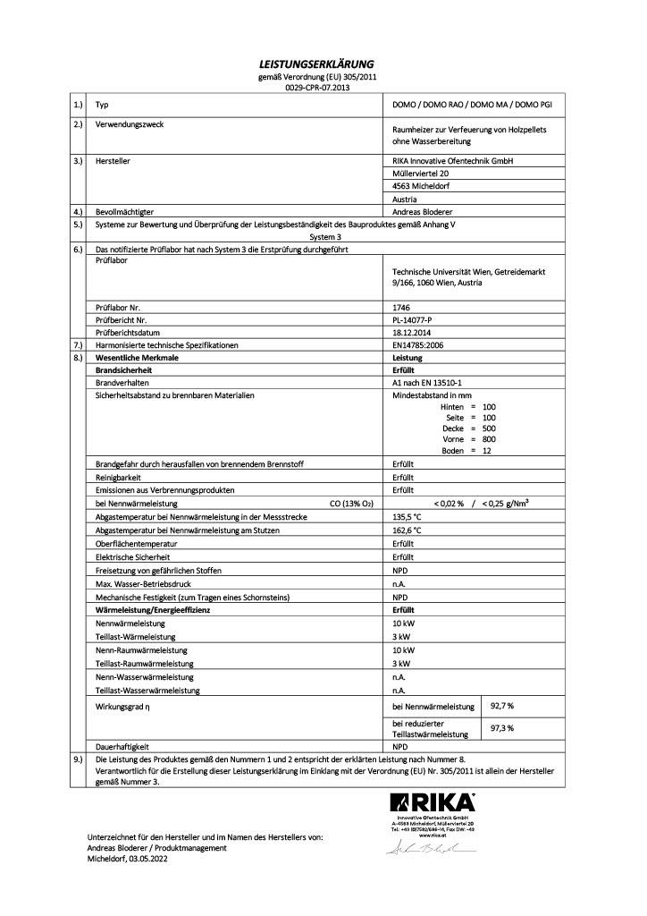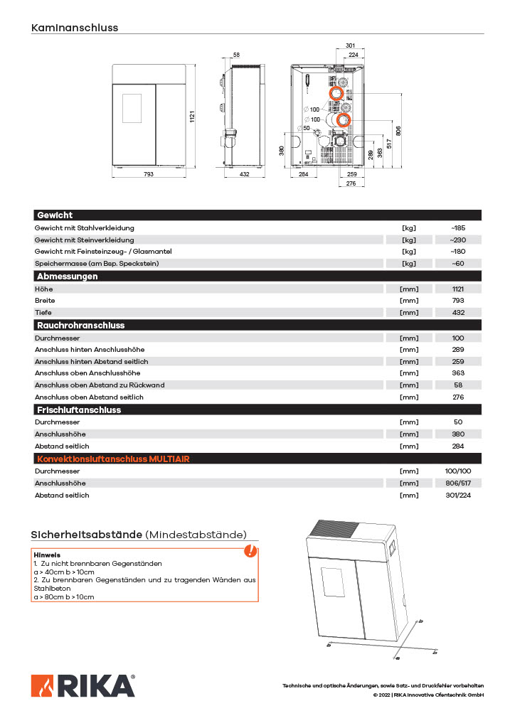 Produktinformationen "RIKA-Pelletofen DOMO, Stein weiß + Deckel RA hinten"