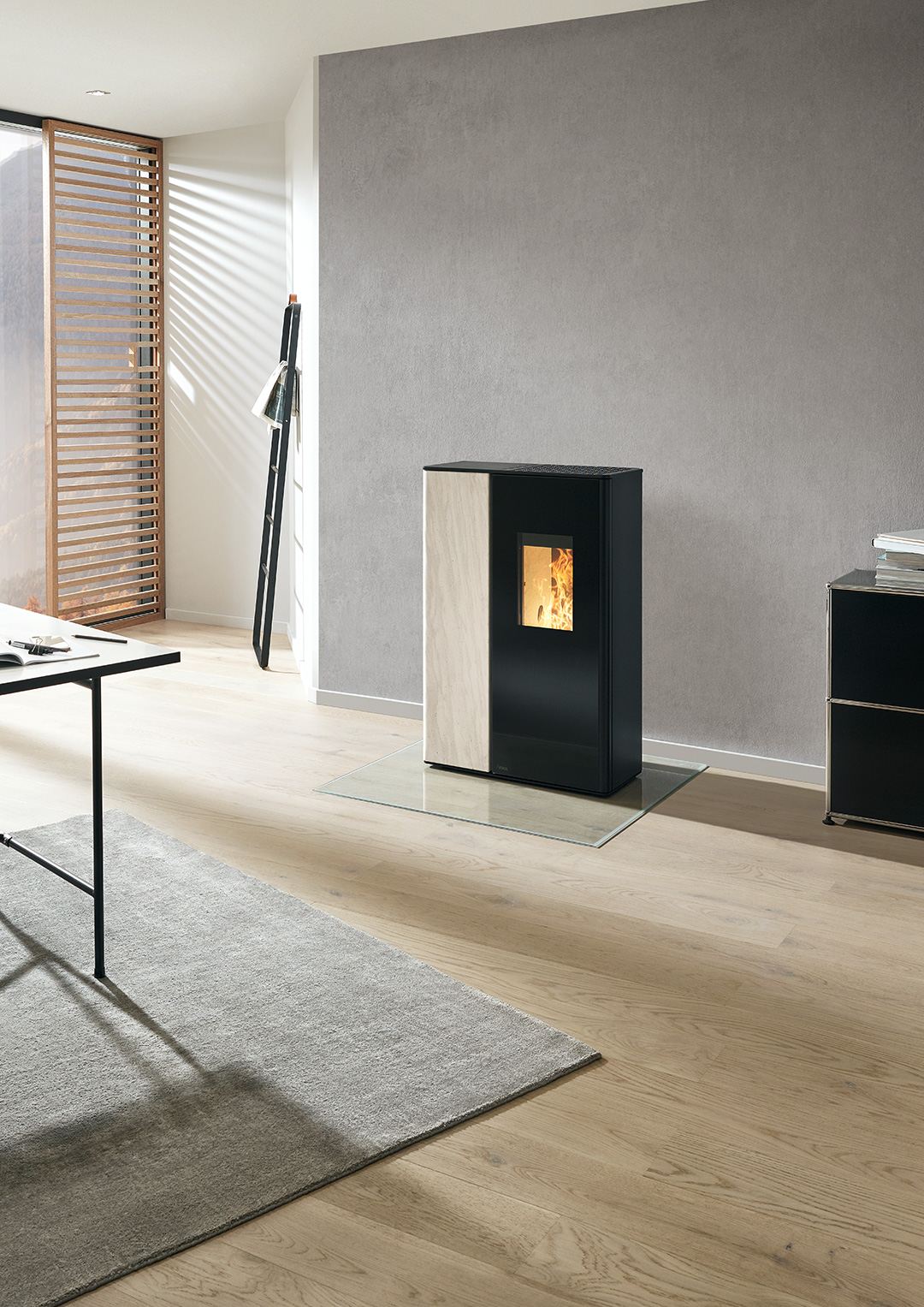 Produktinformationen "RIKA-Pelletofen SONO AH, Stein weiss, Korpus schwarz"