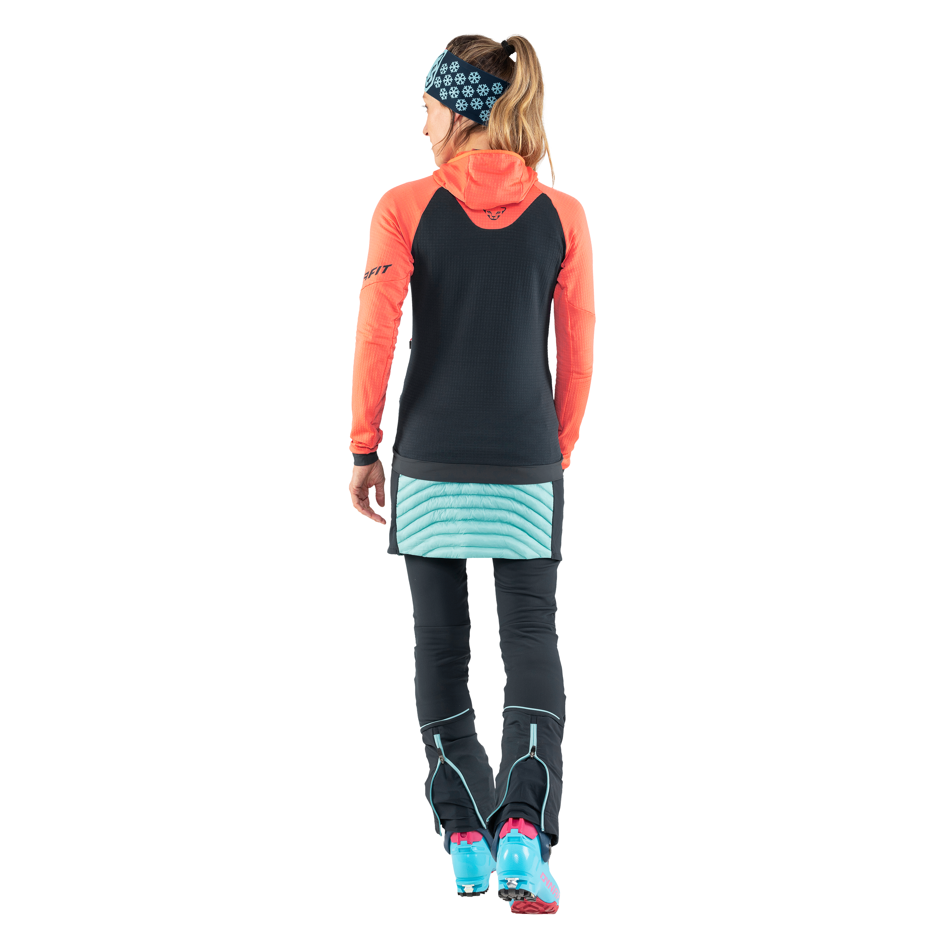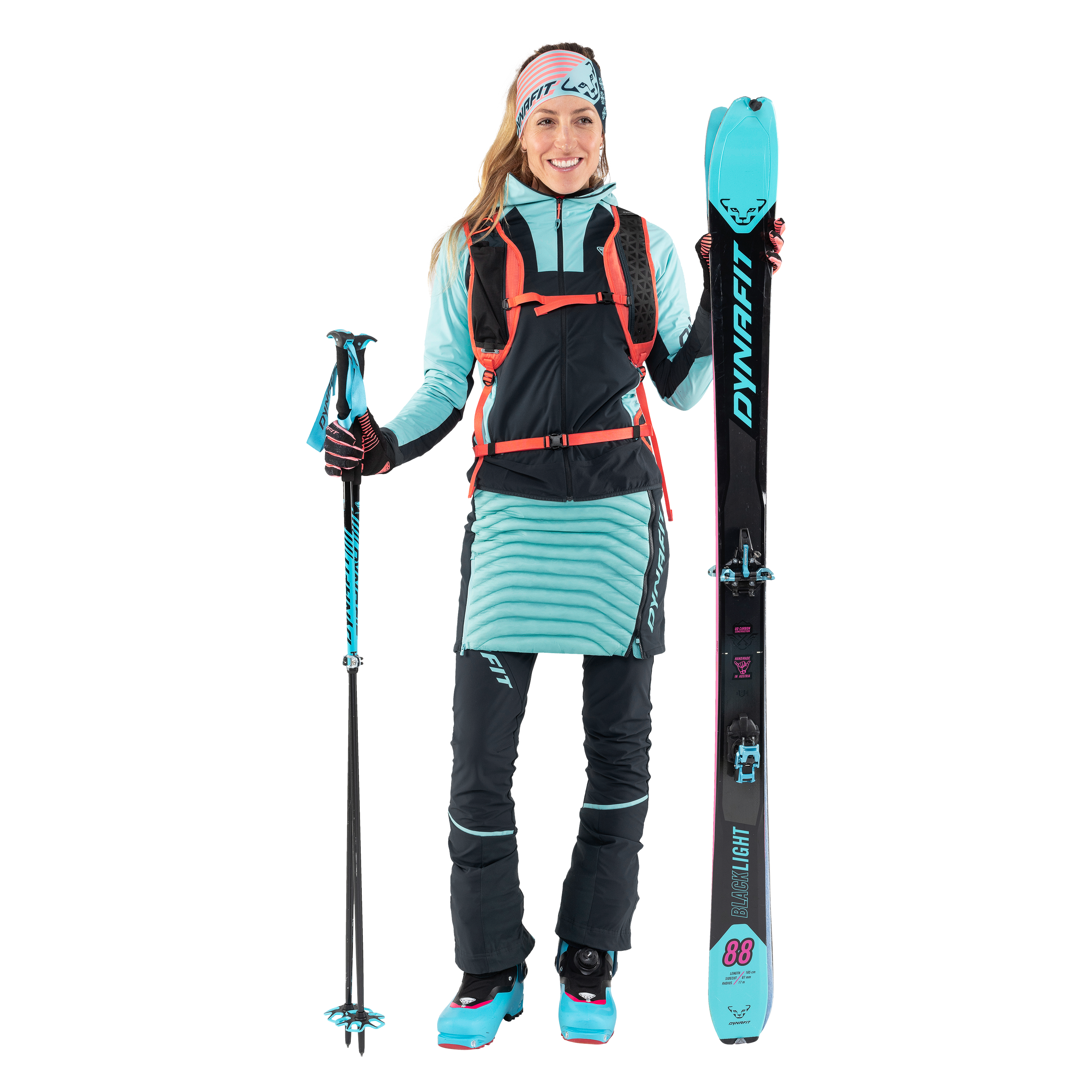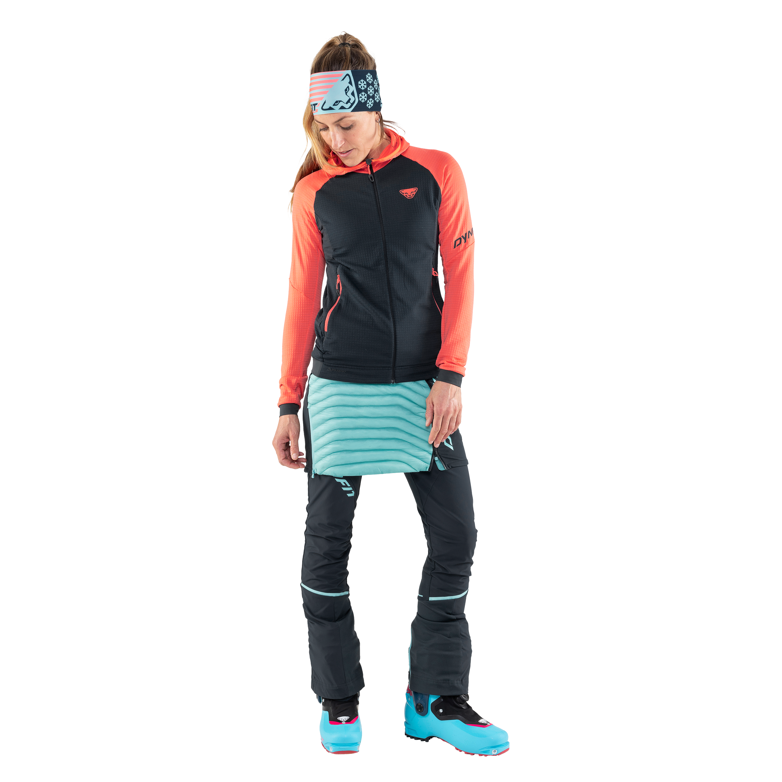Der Speed Insulation Rock für Damen sorgt für Wärme und Komfort auf Skitour und bei der Gipfelrast und rundet Deinen sportlich-femininen Look perfekt ab. In der kühlen Jahreszeit ist es oft nicht so leicht das richtige Outfit zu finden in dem Du weder frierst noch schwitzt. Vor allem an den Oberschenkeln und am Po sind Damen besonders anfällig für Wind und Kälte. Der Speed Insulation Rock ermöglicht Dir ein flexibles Layering und ist im Kältefall immer zur Stelle: Klein, kompakt und leicht passt er in jeden Rucksack und ist dank des praktischen, seitlichen Reißverschlusses im Handumdrehen übergezogen. Optisch erinnert der Rock an Daune, er ist aber mit einer rein synthetischen Füllung aus 100 % recycelter Kunstfaser ausgestattet, die im Vergleich zu Daune deutlich pflegeleichter und unempfindlich gegenüber Feuchtigkeit ist.Dank der elastischen Einsätze und einem zusätzlichen Reißverschluss sind optimale Bewegungsfreiheit und ein fester Sitz garantiert – egal ob bei fordernden Skitouren oder anderen winterlichen Bergaktivitäten.Speed Insulation Rock – Warm, feminin und immer mit dabei.