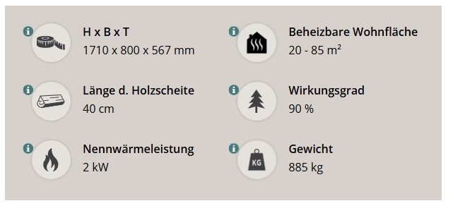 Mit dem Kern aus PowerStone™ sorgt der Kamin für gemütliche Wärme gleichmäßig über den ganzen Tag verteilt