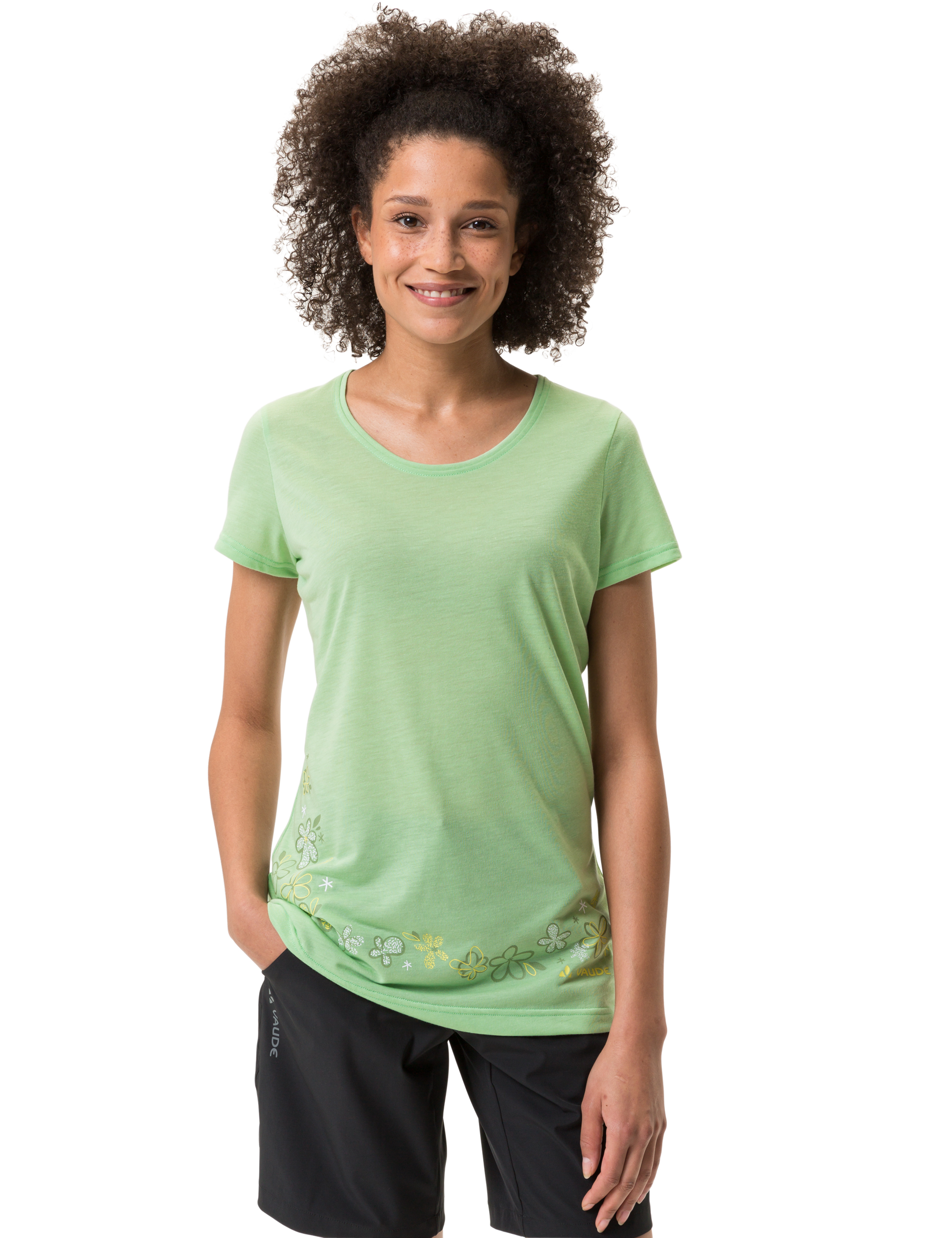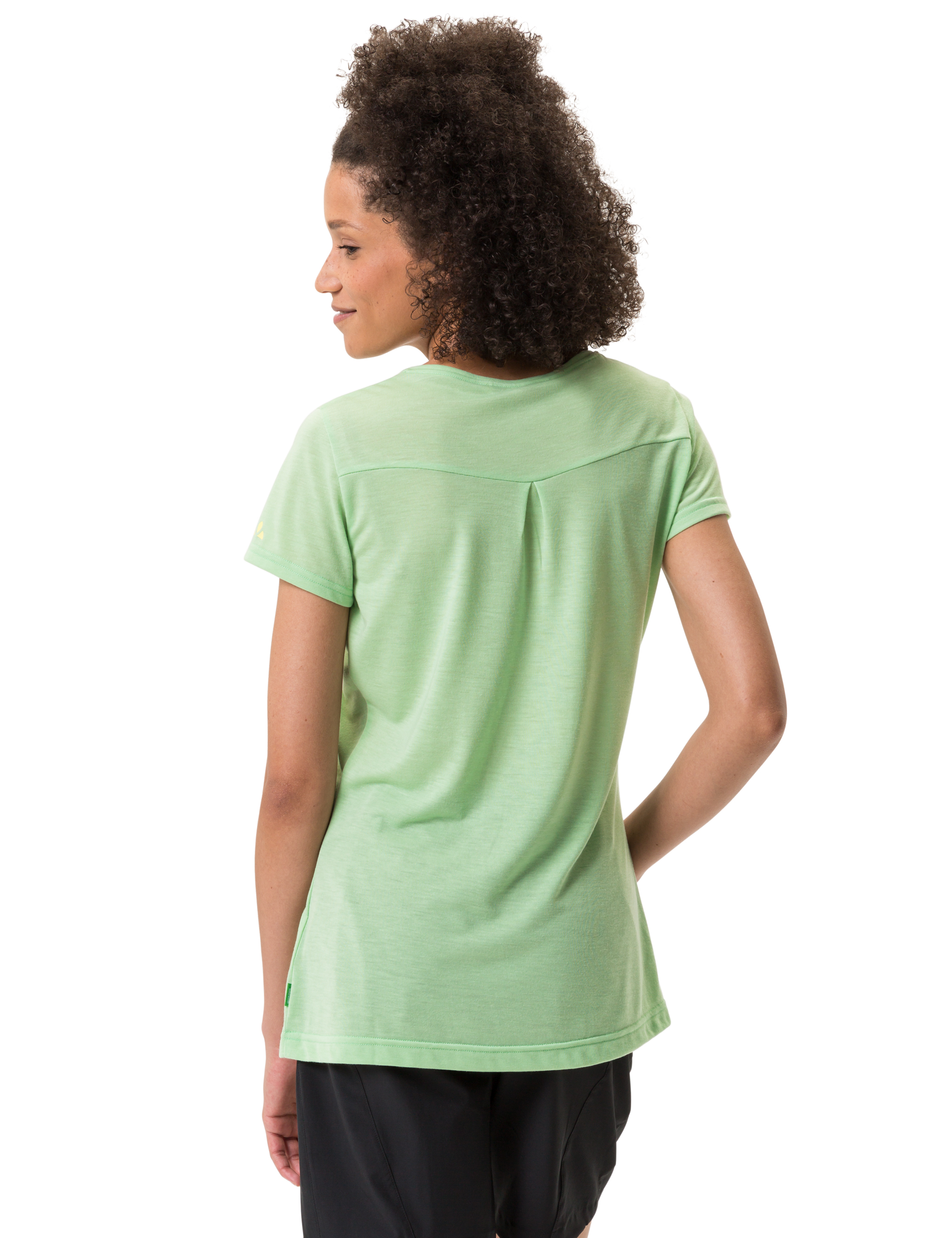 Ein Basic für jedes Wanderoutfit! Das taillierte T-Shirt aus 75 % recyceltem Polyester und 25 % Woodfiber vereint das Beste aus zwei Welten: Die natürliche Faser aus Holz sorgt für einen leicht kühlenden Effekt und verhindert Gerüche bei schweißtreibenden Wanderungen, während das recycelte Polyester schnell trocknet und Feuchtigkeit vom Körper weg transportiert. Das Wandershirt ist feminin geschnitten und liegt angenehm an, so dass auch mit Rucksack nichts drückt oder reibt. Die dekorative Falte am Rücken und der Druck machen aus dem T-Shirt ein funktionelles Shirt für moderate Wanderungen und Tagestouren und ein pflegeleichtes Kleidungsstück für jeden Tag. Das VAUDE Green Shape-Label steht für ein umwelt- und klimafreundliches, funktionelles Produkt aus bluesign® zertifizierten, nachhaltigen Materialien.