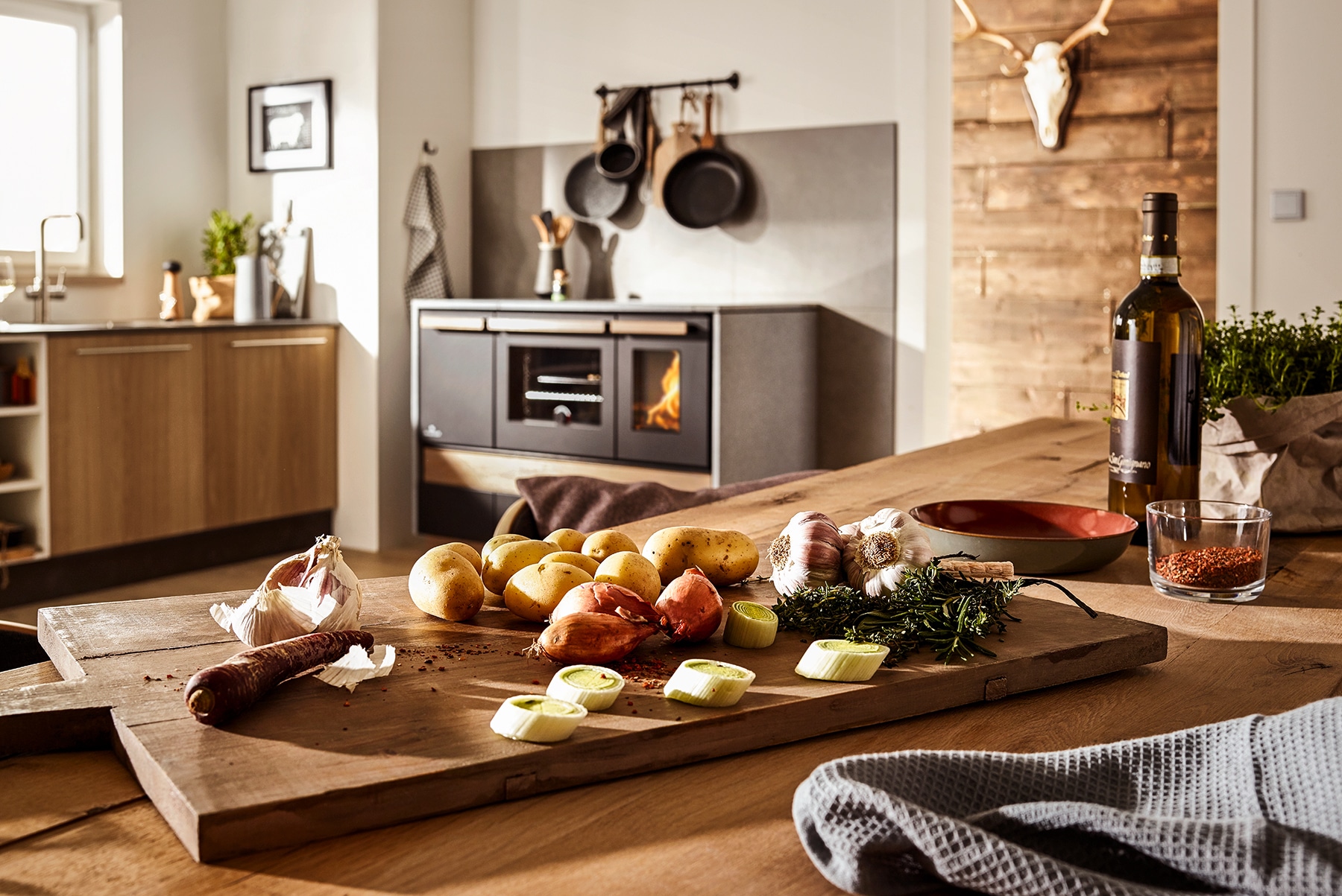 Der Alpin begeistert mit Griffen aus Holz und einer Oberfläche aus Stein. Modern mit mattem Schwarz und geradlinigem Design.