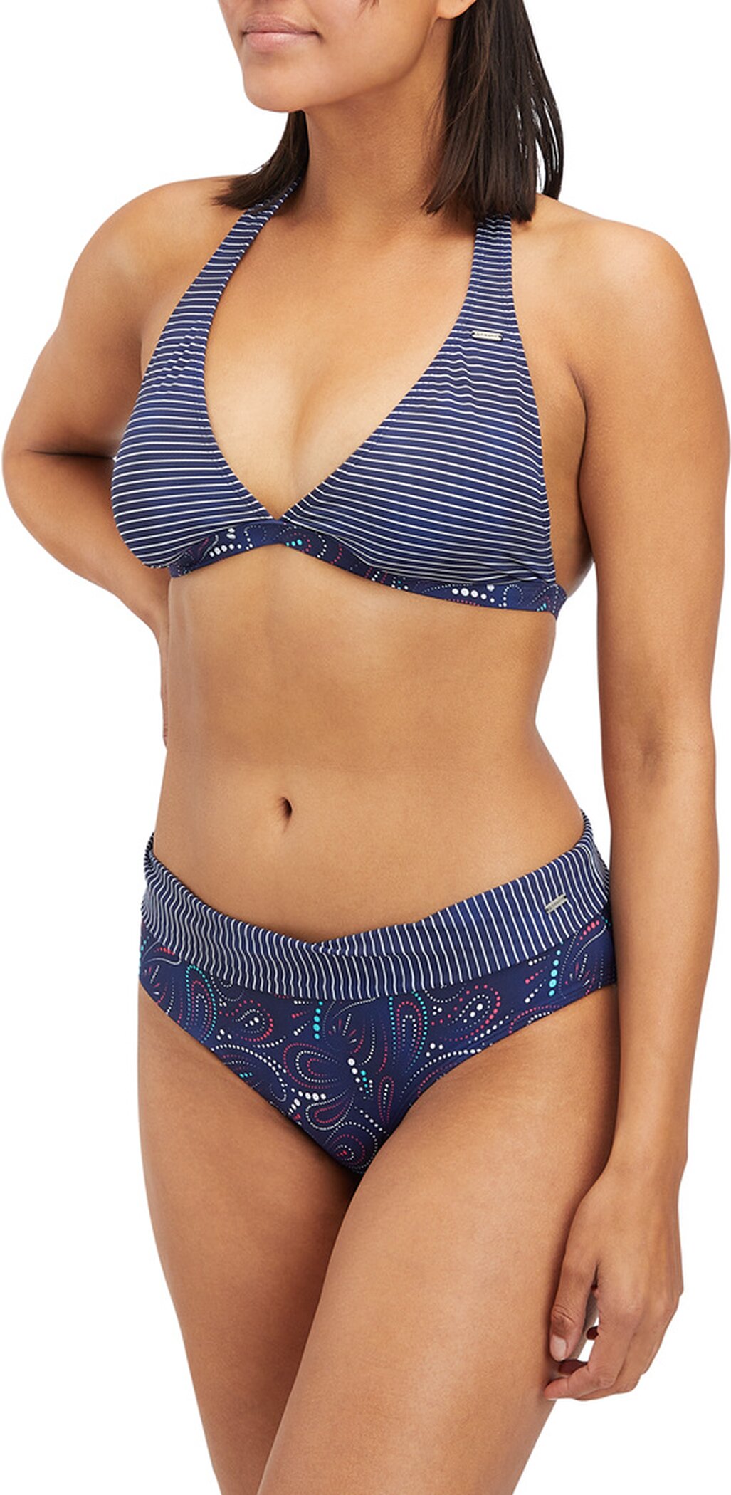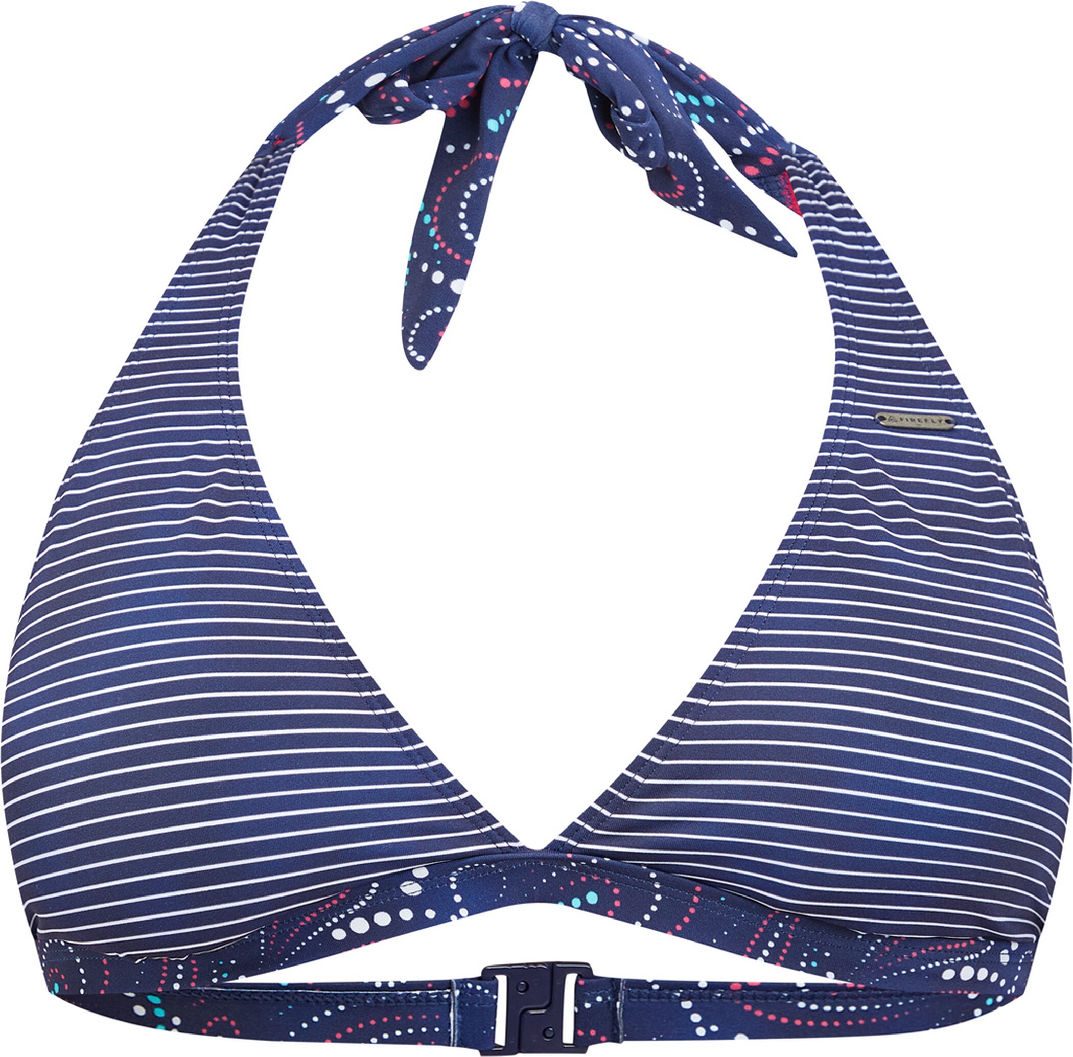 Das Neckholder-Oberteil Mia von FIREFLY bietet ein Triangeldesign mit herausnehmbaren Paddings und ist im Nacken zu binden. Das schnelltrocknende und bequeme Top ist zudem mit einem fixierten Unterbrustband versehen. Erhältlich mit Mix and Match Druck kombiniert mit Streifen oder unifarben.