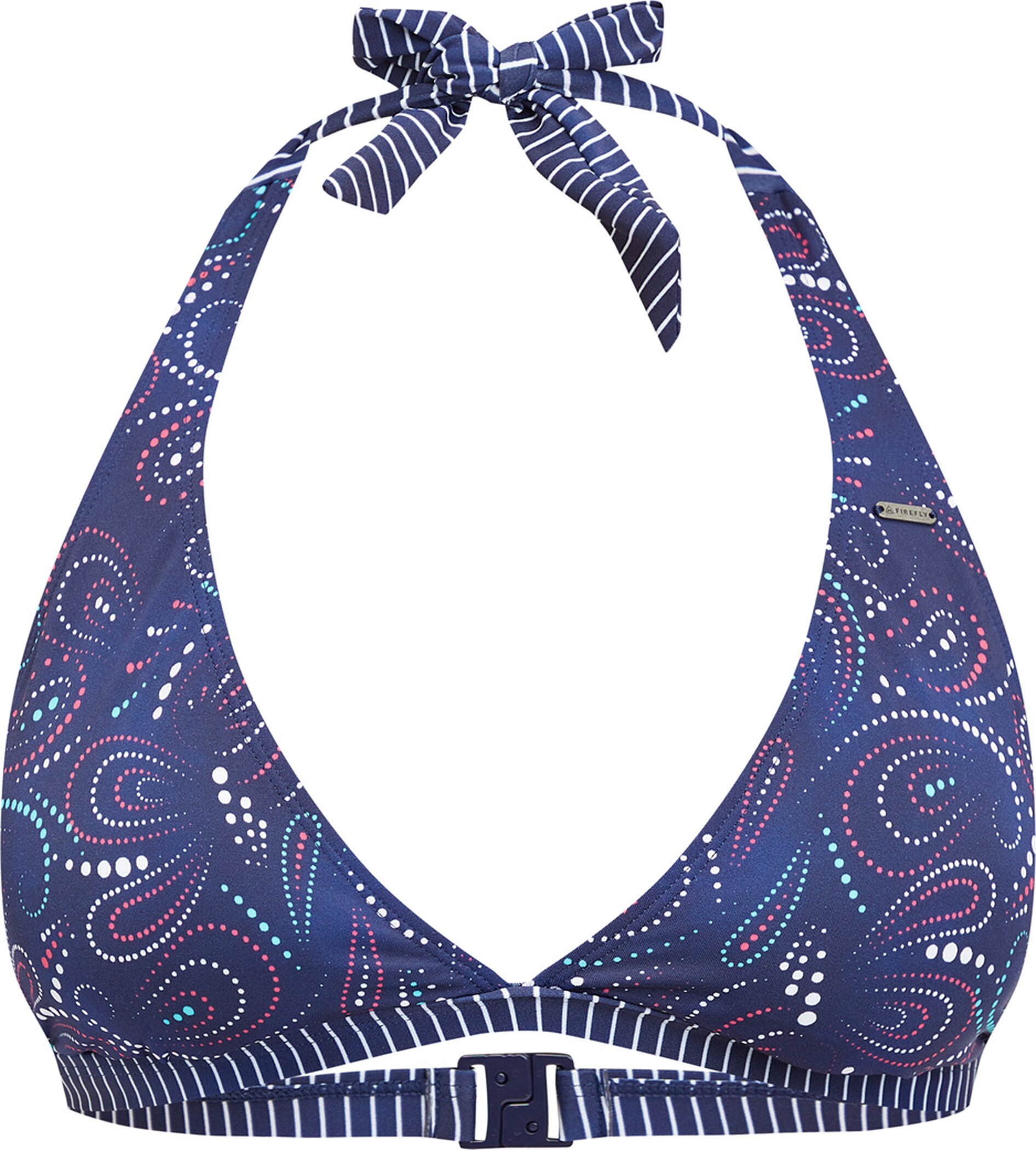 Das Neckholder-Oberteil Mia von FIREFLY bietet ein Triangeldesign mit herausnehmbaren Paddings und ist im Nacken zu binden. Das schnelltrocknende und bequeme Top ist zudem mit einem fixierten Unterbrustband versehen. Erhältlich mit Mix and Match Druck kombiniert mit Streifen oder unifarben.