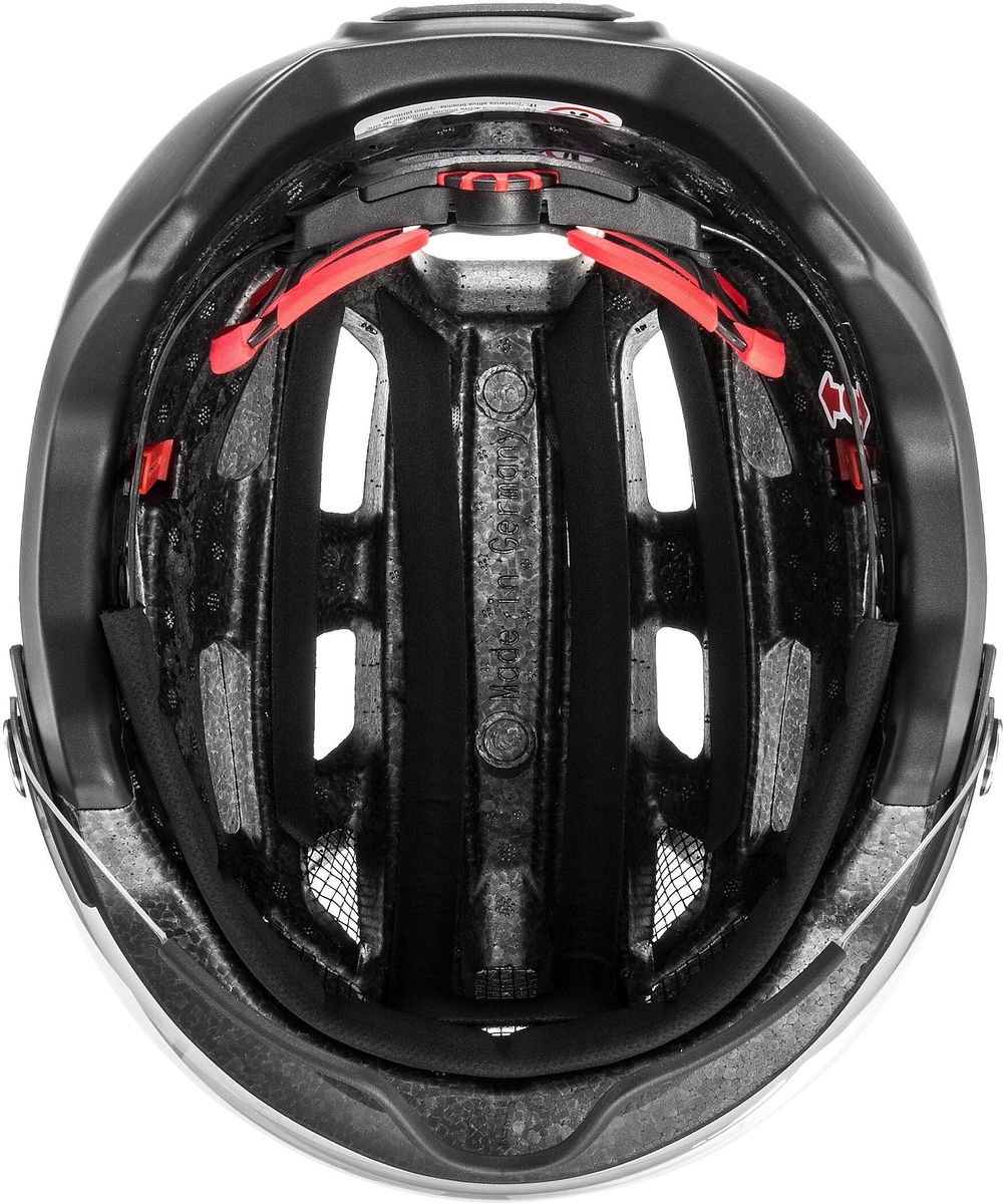 Die lässige Form mit den heruntergezogenen Seitenteilen und mehr Fläche am Hinterkopf bietet dir zusätzliche Sicherheit und erinnert an angesagte Mountainbike-Helme. Über das uvex anatomic 3D IAS system kannst du deinen Helm in der Weite optimal anpassen. Zwanzig Belüftungsöffnungen und innen verlaufende Ventilationskanäle sorgen für optimale Luftzirkulation und einen kühlen Kopf im dichten Straßenverkehr. Besonders sicher: Das Plug-In LED und die reflektierenden Straps und Logos für bessere Sichtbarkeit in der Dämmerung.